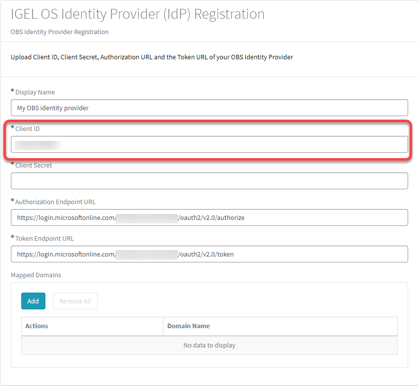 Wechseln Sie zur Registerkarte IGEL Customer Portal (IGEL OS Identity Provider (IdP) Registration) und fügen Sie den Token-Endpoint in das Feld Client ID ein.