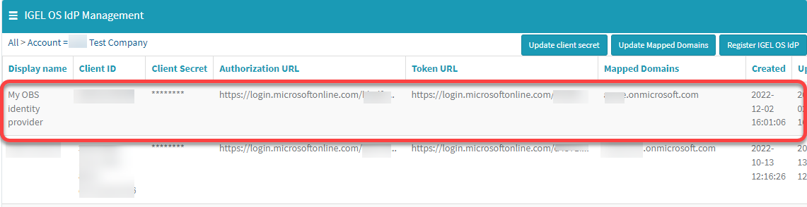 Wechseln Sie zur Registerkarte IGEL Customer Portal (IGEL OS Identity Provider (IdP) Registration) und fügen Sie den Clientschlüssel in das Feld Client secret ein.