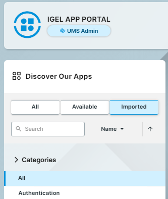 Imported: Alle Apps, die bereits in die UMS importiert wurden. In der UMS Web App werden die importierten Apps unter Apps angezeigt.