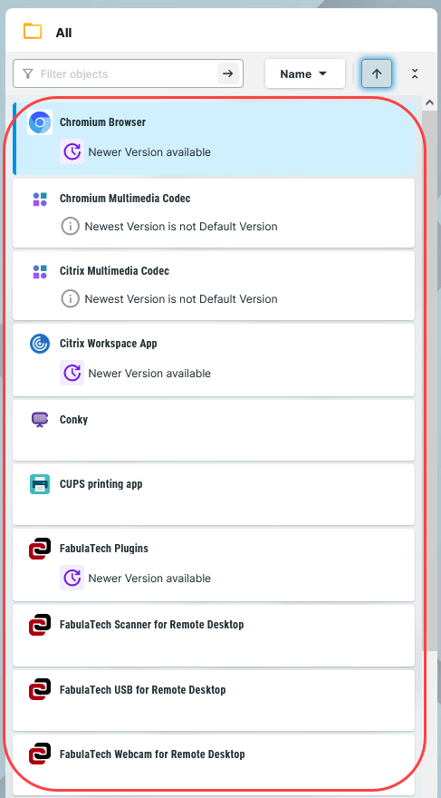 Wenn bei der Zuweisung keine Version für eine App angegeben wird, wird die Standardversion verwendet. Es ist möglich, die Version für eine App im Dialog Assign object entweder unter Assignable objects oder unter Assignmentszu wählen.