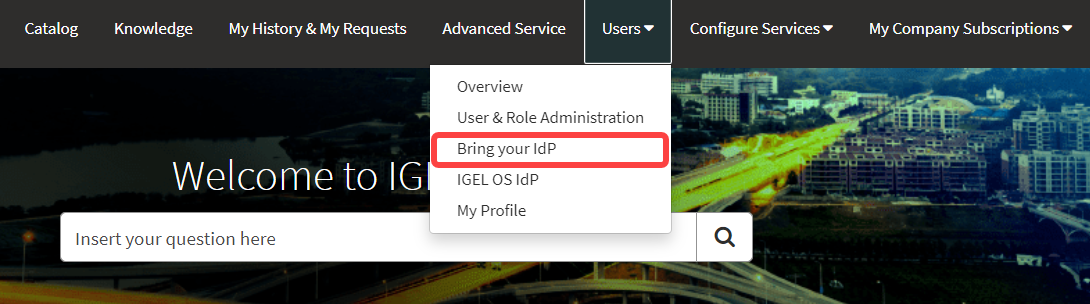 Öffnen Sie das IGEL Customer Portal, loggen Sie sich in Ihr Admin-Konto ein und wählen Sie Users > Bring your IdP.