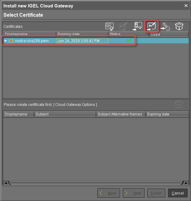 Um sicherzustellen, dass Ihre Zertifikate von Ihrer IGEL Cloud Gateway-Installation verwendet werden können, siehe Zertifikat Anforderungen und Empfehlungen für das IGEL Cloud Gateway (ICG).
