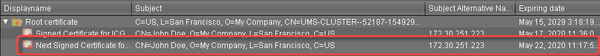 Das neue Zertifikat enthält die gleichen IP-Adressen oder Hostnamen wie das aktuelle Zertifikat