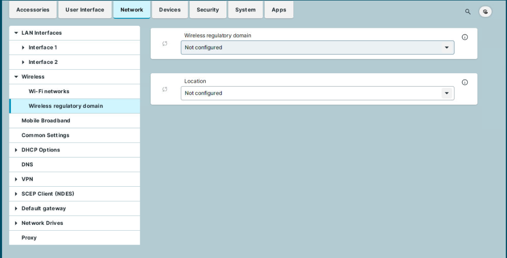 Menüpfad: Netzwerk > Wireless > Wireless Regulatory Domain