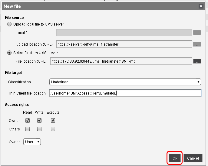 IBMi.kmpund wählen Sie im Kontextmenü Andere Thin Client Befehle > Datei TC->UMS.
