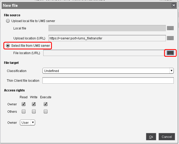 Im Dialog Neue Datei wählen Sie Datei vom Server UMS auswählen und klicken auf