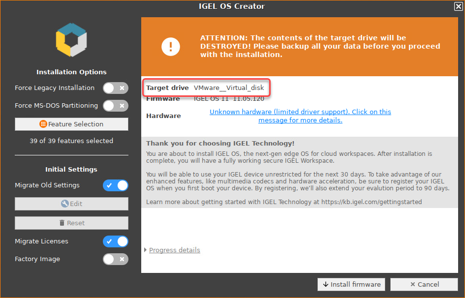 Dieser Artikel beschreibt das reguläre Installationsverfahren für einzelne Geräte mit dem IGEL OS Creator (OSC). Wenn Sie ein IGEL-Drittanbieter (d.h. Hardwarehersteller, unabhängiger Hardwareanbieter, Wiederverkäufer) sind, der über eine Factory ID von IGEL verfügt, lesen Sie bitte Installationsverfahren für Factory Images.