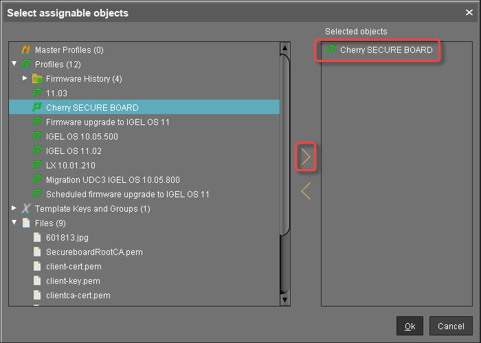 Im Strukturbaum UMS wählen Sie die Geräte aus, die mit den Cherry SECURE Board Tastaturen verbunden werden sollen.