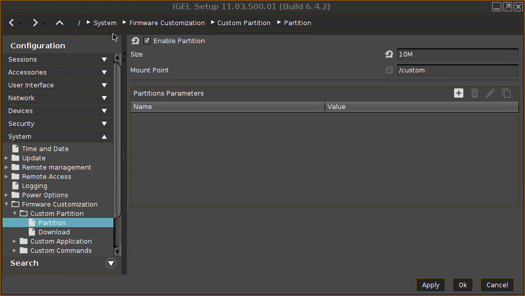 Gehen Sie zu System > Firmware-Anpassung > Benutzerdefinierte Partition > Partition.