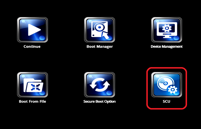 Using the arrow keys, navigate to the option SCU and press [ENTER]. This will open the InsydeH20 Setup Utility.