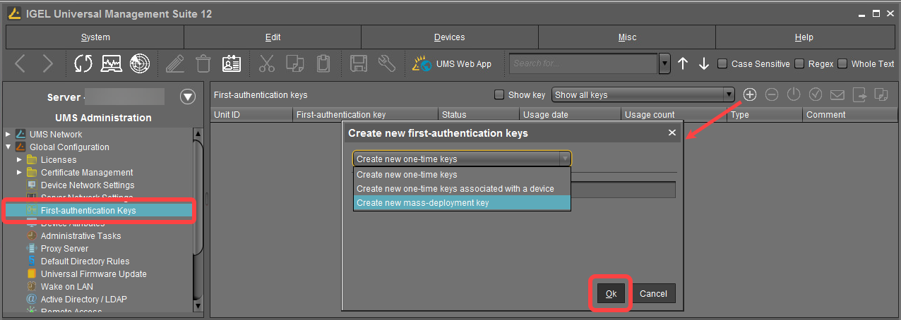First-Authentication Keys in der IGEL UMS