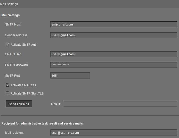 smtp.gmail.comals der SMTP-Host ein.Geben Sie Ihre Gmail-Adresse unter E-Mail-Absenderadresse ein.