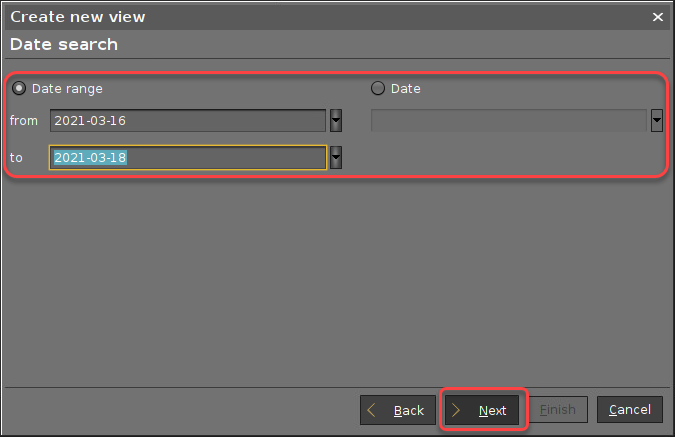 Geben Sie die Daten ein, je nachdem, ob Sie Letzter Kontaktzeitpunkt (relativ) oder Letzter Kontaktzeitpunkt (absolut) gewählt haben, und klicken Sie anschließend auf Weiter.
