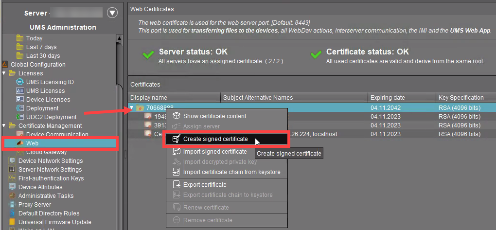 Sie benötigen die Client-Zertifikatkette, um den Reverse Proxy / externen Load Balancer zu konfigurieren. Weitere Informationen finden Sie unter IGEL Universal Management Suite Netzwerkkonfiguration.
