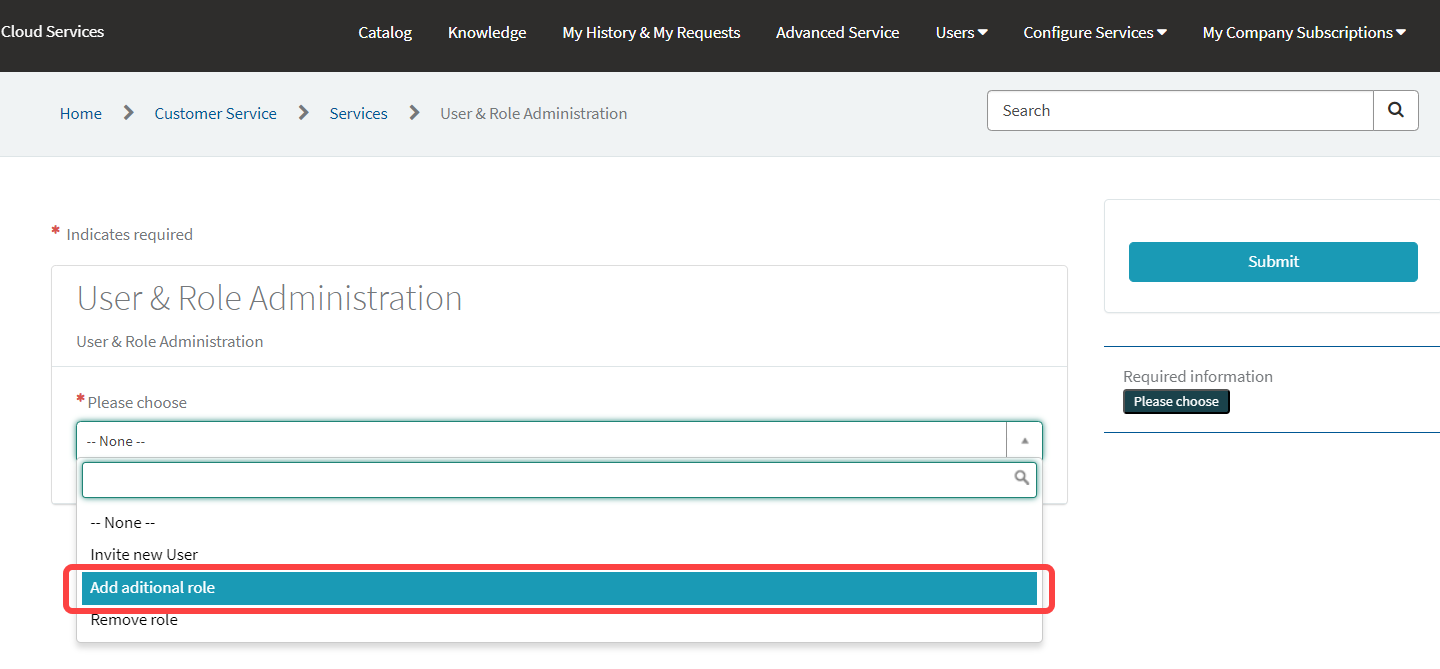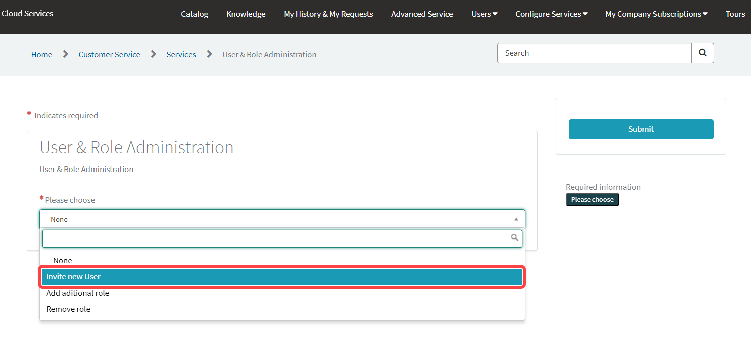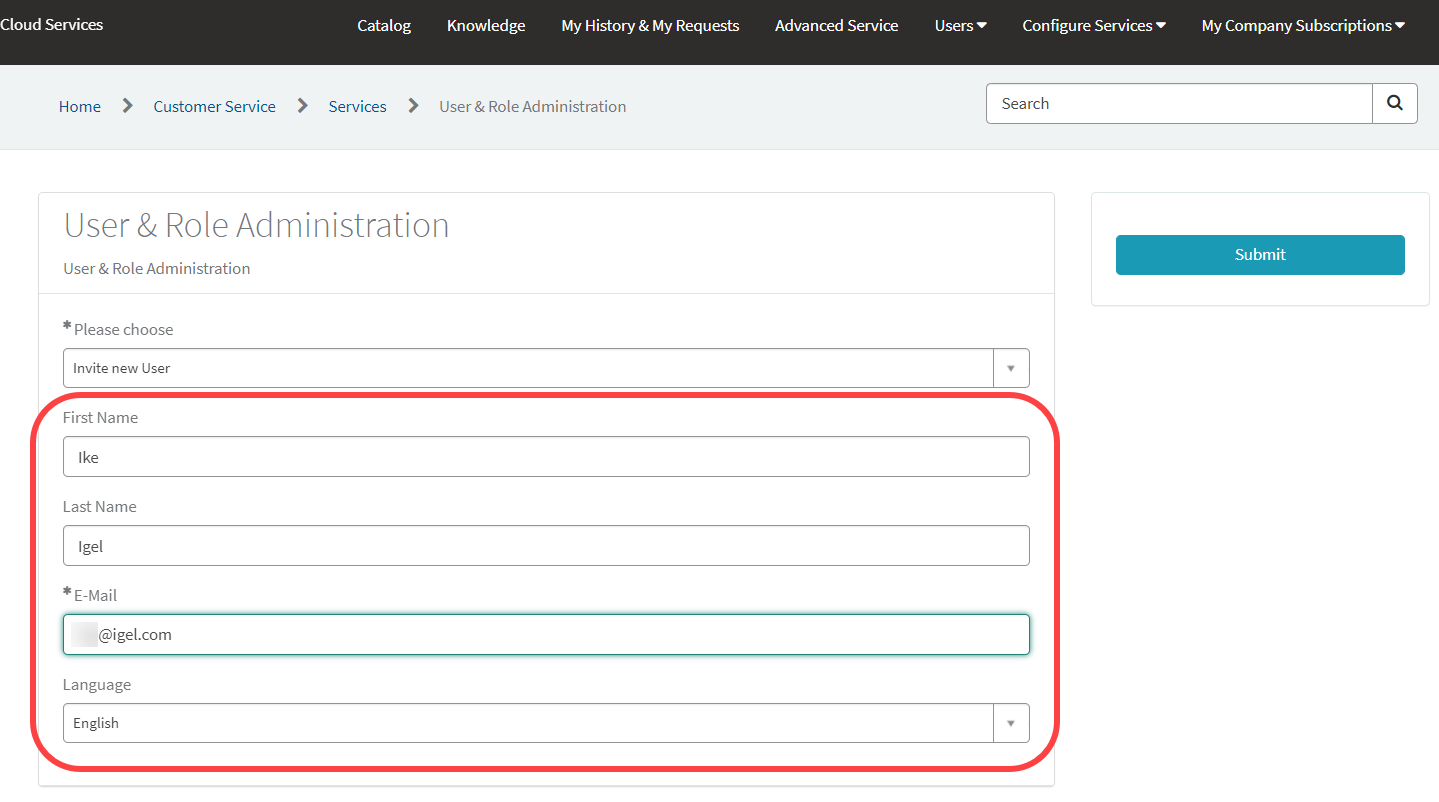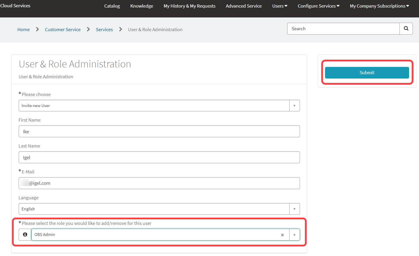 Open the IGEL Customer Portal, log in to your admin account, and select Users > User & Role Administration.