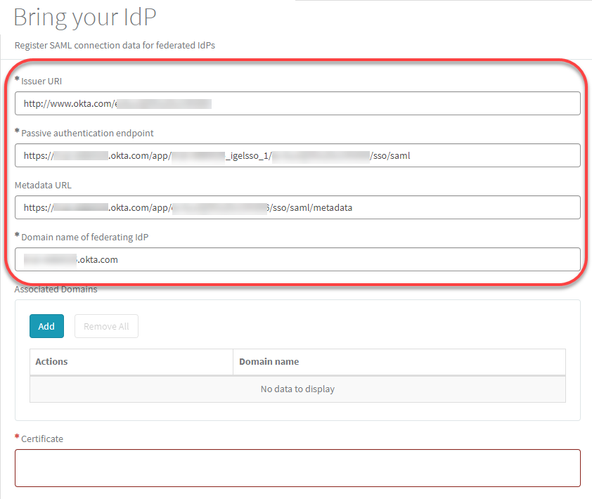 Under Associated Domains, add the domains that will be associated with your federate IdP.