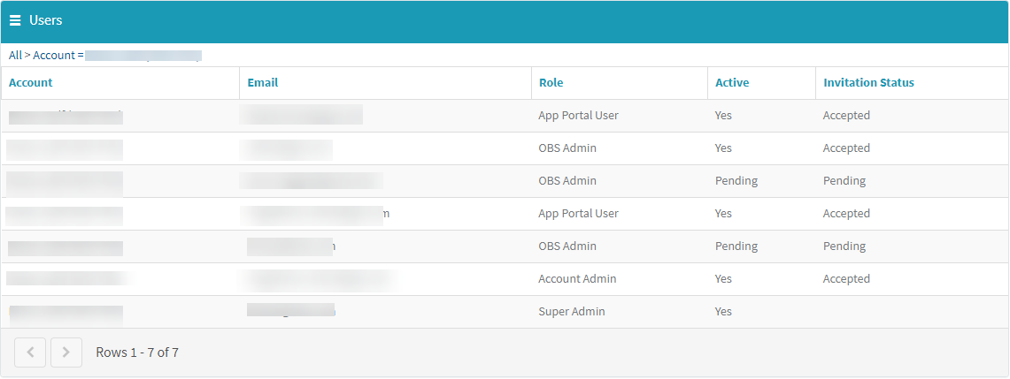 Super Admin | Account Admin | OBS Admin | UMS Admin | App Creator | Customer Support | |