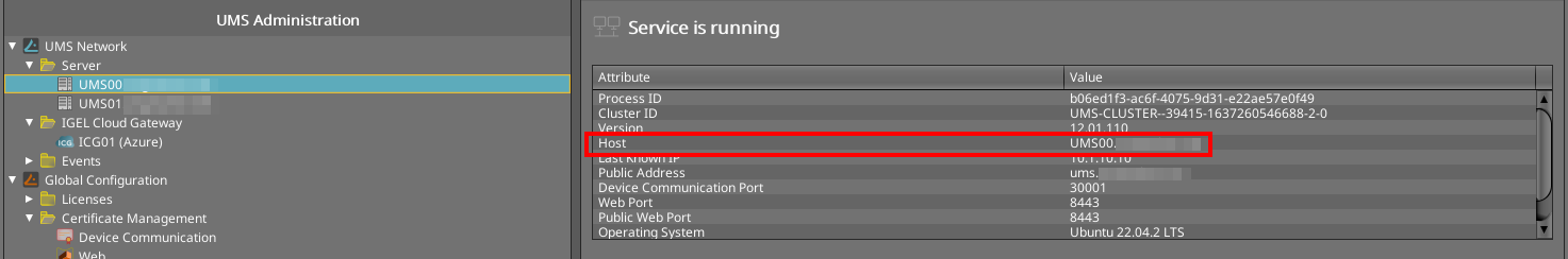 The best practice is to use the common / routable FQDN and not the automatically generated name for the hostname. It is generally recommended to check for hostname oddities. For example, such names as ums00.dci3rsbtfpeunizc5g5gghfhwg.ux.internal.cloudapp.net are common for cloud-hosted servers and generated automatically when creating a VM, e.g. in Azure – they should be renamed to simpler FQDNs such as ums00.igel-demo.com.
