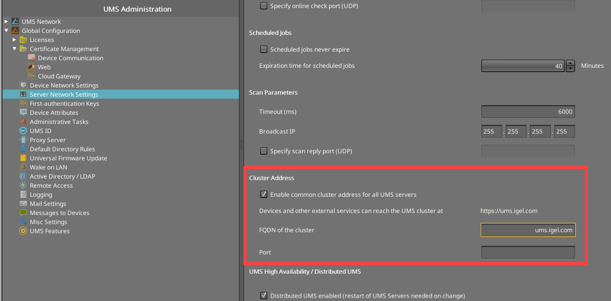 If you are using multiple UMS Servers and they share a single external address, then you will need to update the FQDN of the UMS cluster; see "Cluster Address" section under Server Network Settings in the IGEL UMS. To do this, you can follow the steps below: