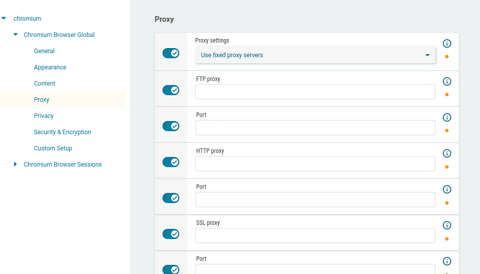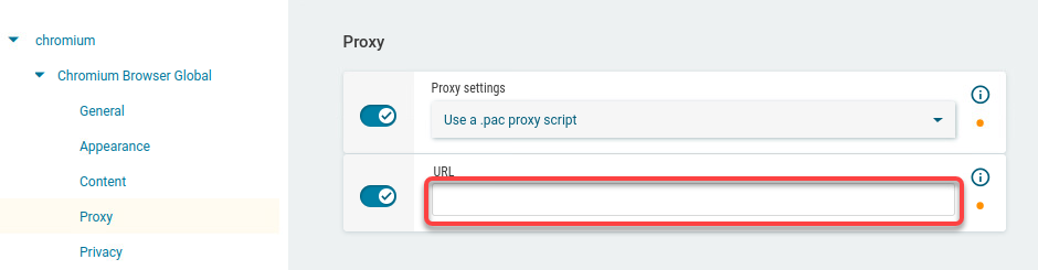 In the profile configurator, go to Apps > Chromium > Chromium Browser Global > Proxy.