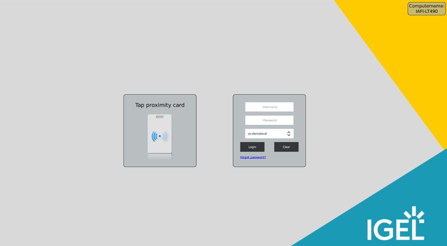 In the default setting, the agent will start in a compact mode login in the bottom right corner of the screen with a portion of the IGEL desktop accessible.