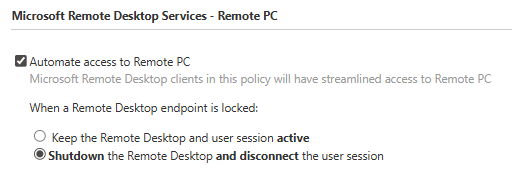 In Follow Policies and Workflows mode, IAFI only supports the Imprivata VDA policy for Microsoft Remote Desktop Services - Remote PC as seen below in the Imprivata Global VDA, Computer and User Policy settings.