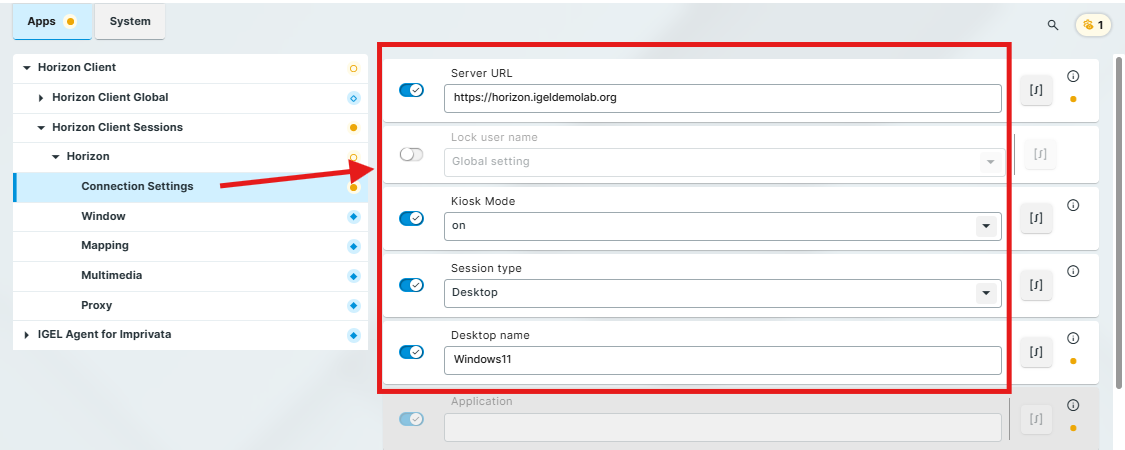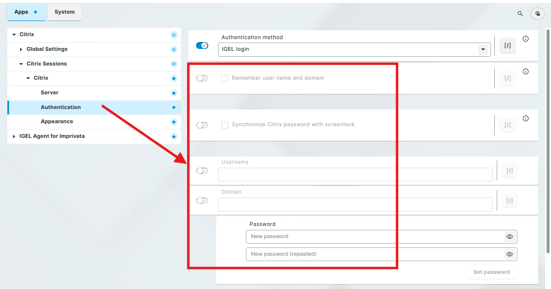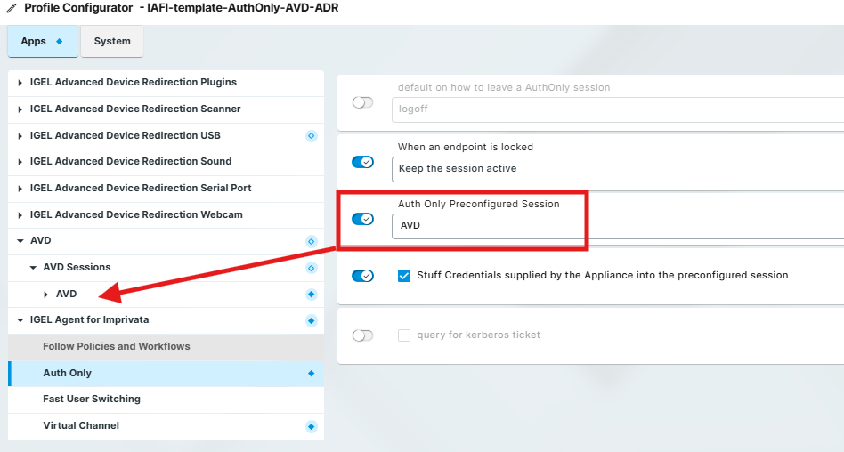 In the profile configurator, go to Apps > IGEL Agent for Imprivata.