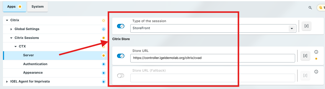 Citrix Store: Enter the FQDN URL for the Citrix Store
