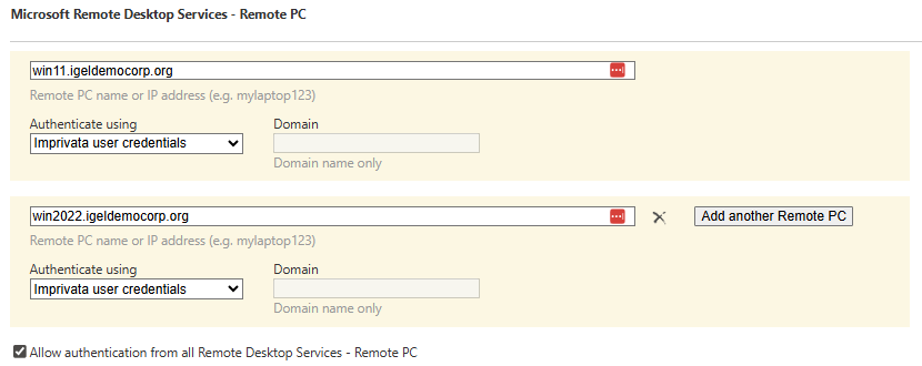 ☑ When enabled, you can specify the name of a specific domain if more than one is configured in the Imprivata Appliance directories.