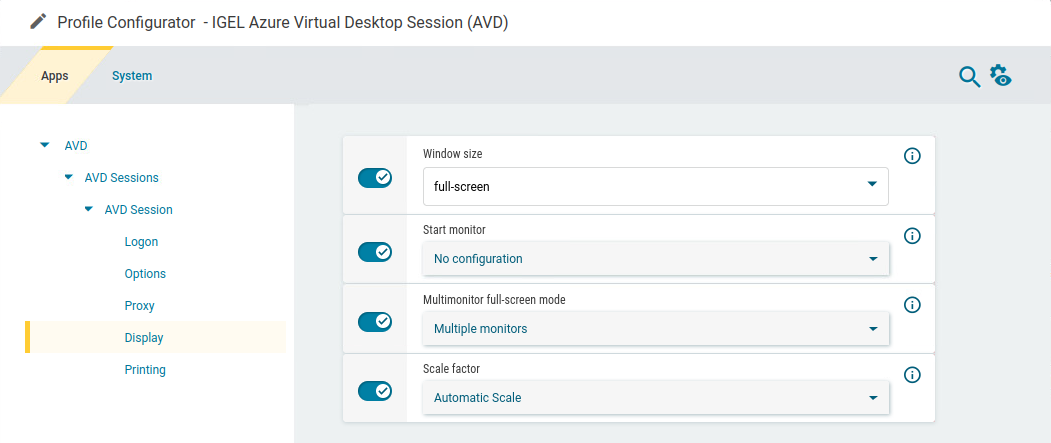 In the profile configurator, go to Apps > AVD > AVD Sessions > [session name] > Display.