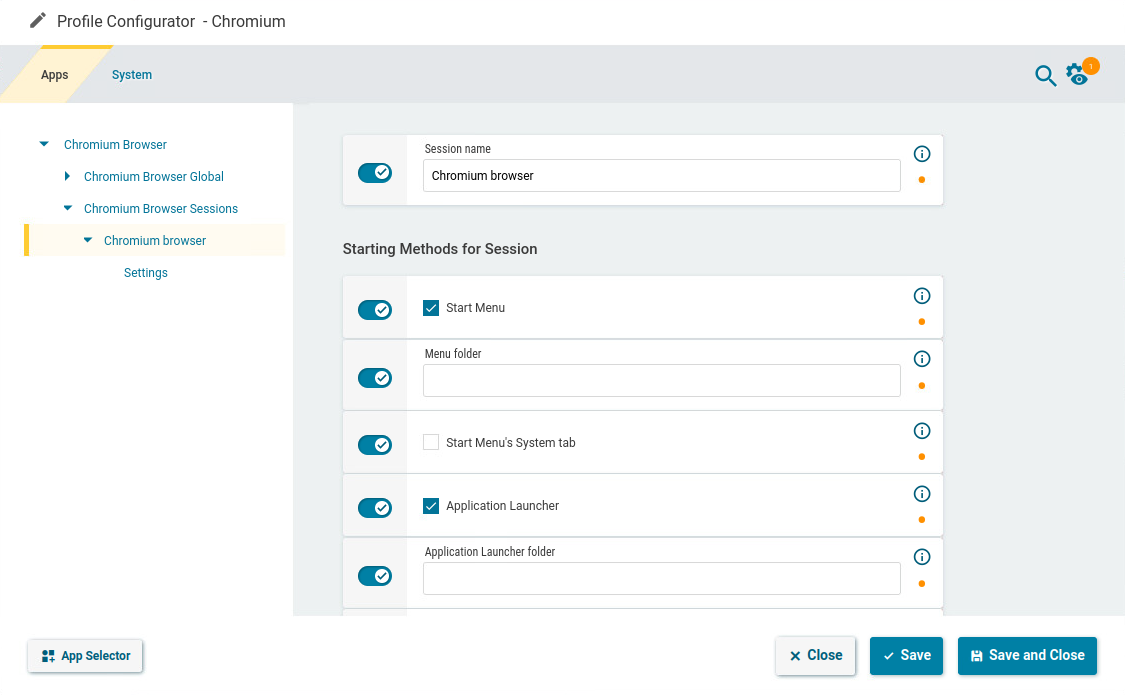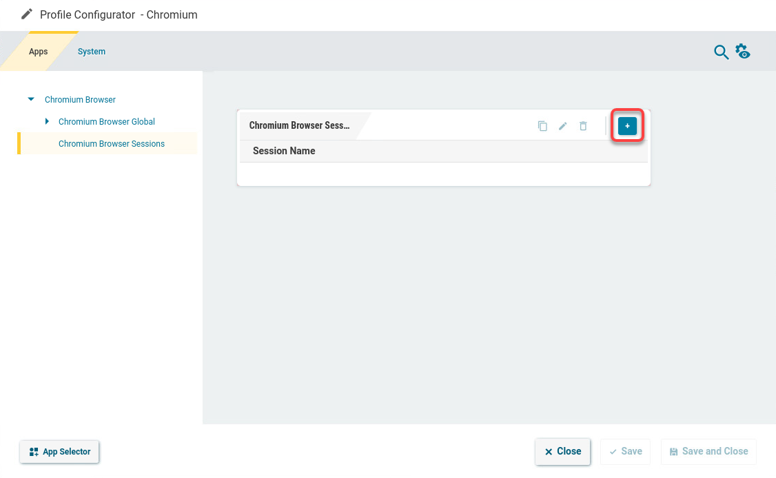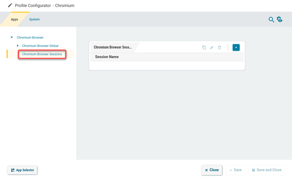 In the profile configurator, go to Apps > Chromium Browser > Chromium Browser Sessions.