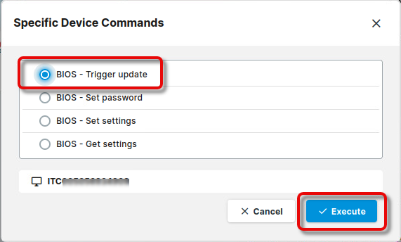 Select BIOS - Trigger update and click Execute.