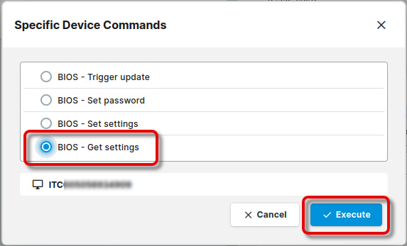 Select BIOS - Get settings and click Execute.