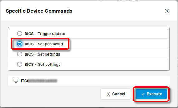 Select BIOS - Set password and click Execute.