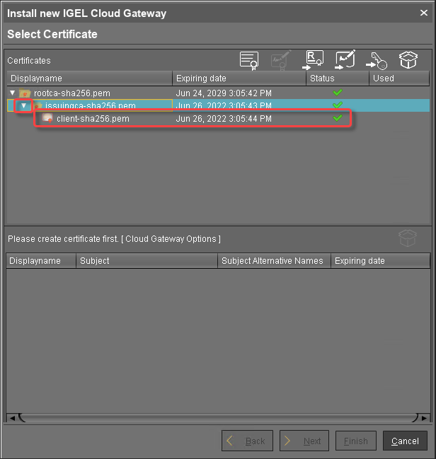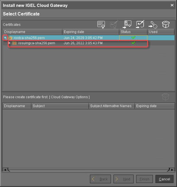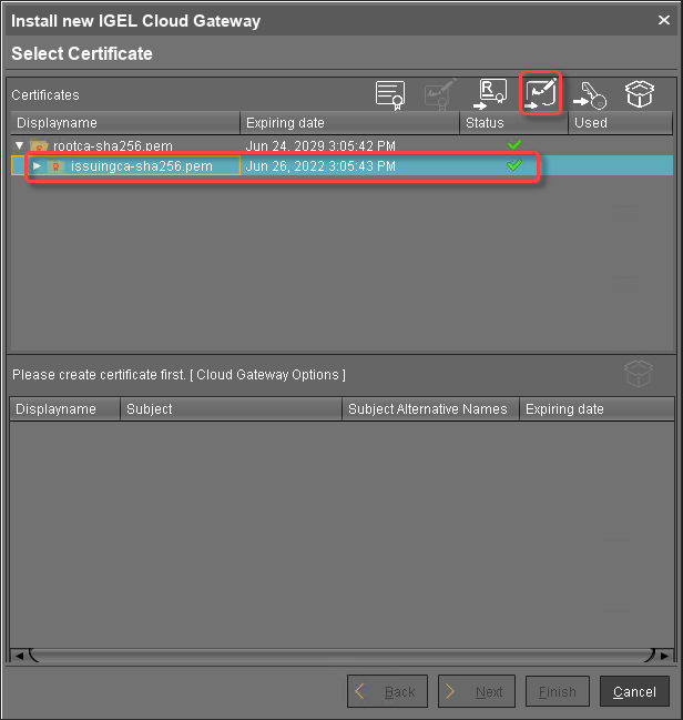 To make sure that your certificates can be used by your IGEL Cloud Gateway installation, see Certificate Requirements and Recommendations for the IGEL Cloud Gateway (ICG).