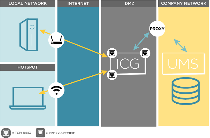 ICG in the Demilitarized Zone (DMZ) of the Company Network and Proxy