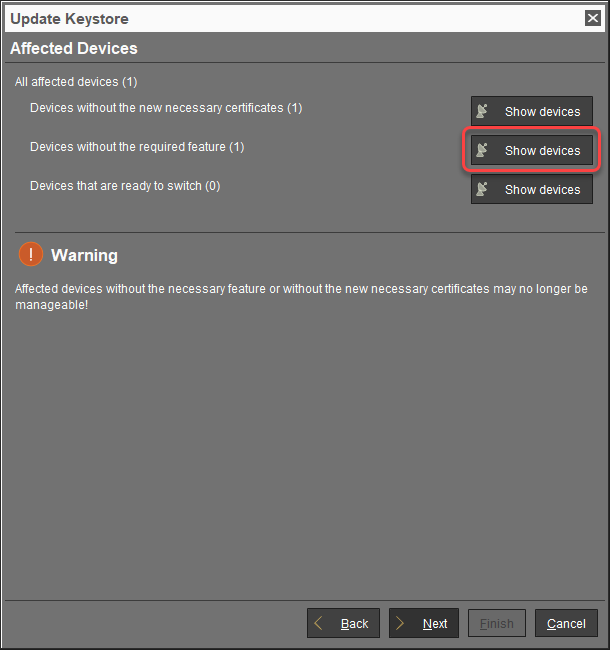 1. Review the Affected Devices dialog.