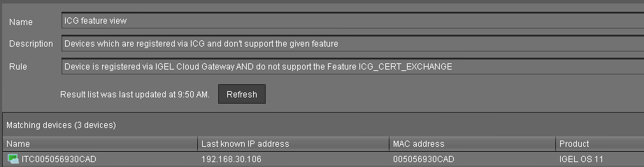 The devices listed at Devices without the required feature do not have the capability to exchange the ICG certificate and must be updated to IGEL OS 11.04.240 or higher.