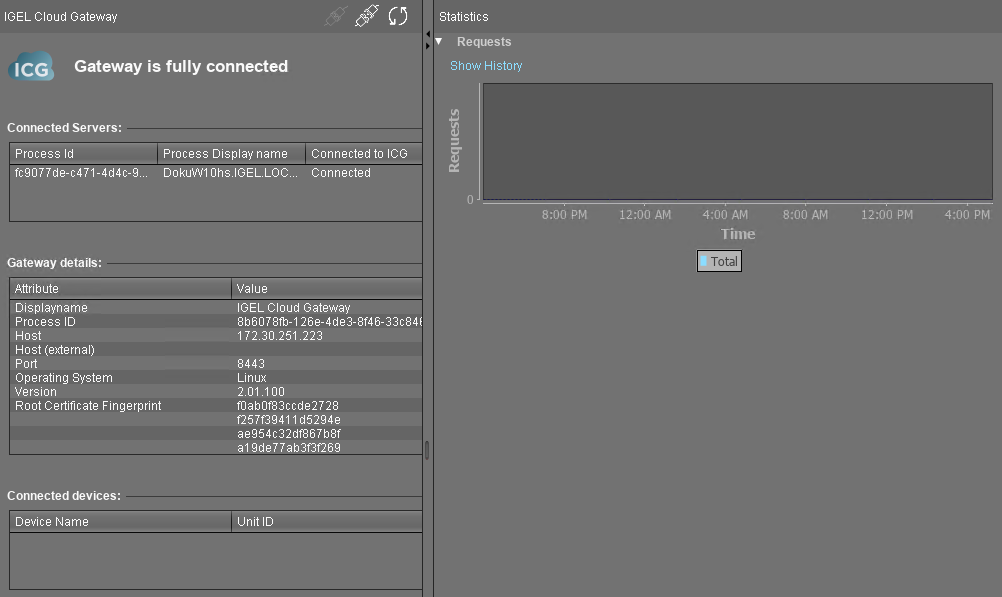 To review the status of the ICG and basic data about the installation, go to UMS Administration > IGEL Cloud Gateway > [display name of your IGEL Cloud Gateway].