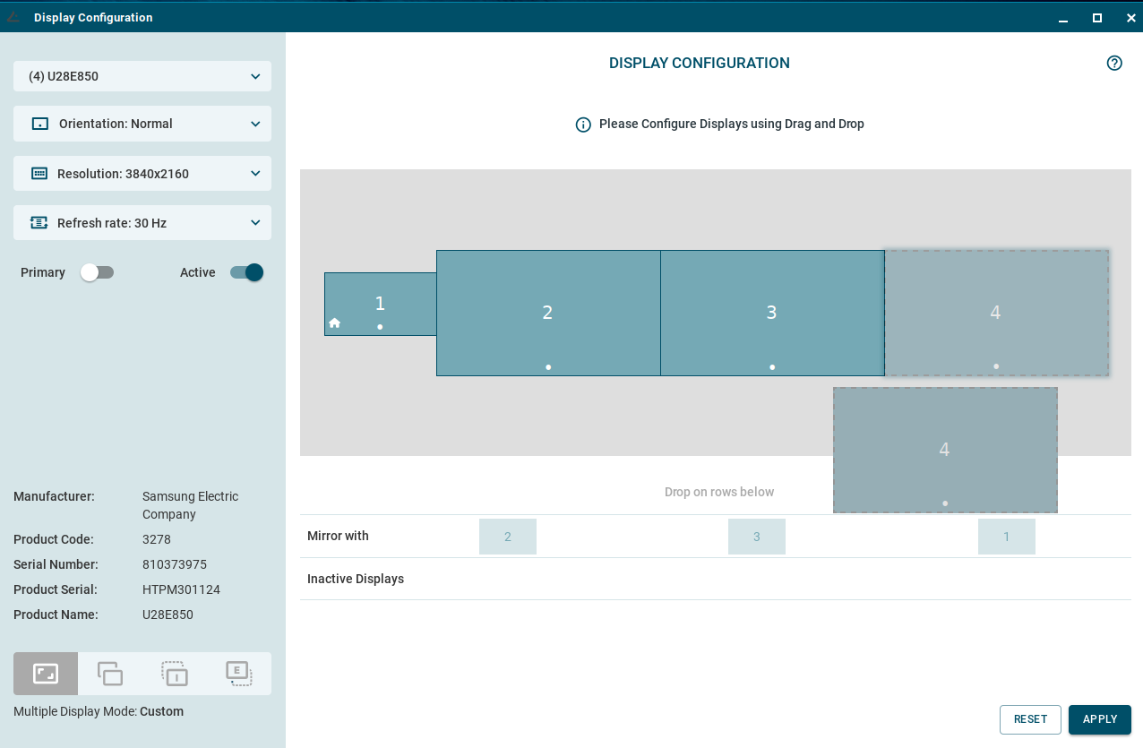 Custom (Default) The configurations made in the display configuration window are applied. Configurations made in the display configuration window are persistent, they carry over reboot.