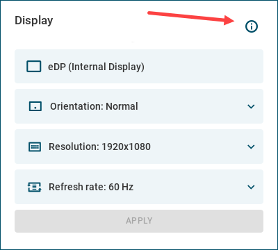 → Select a display from the dropdown at the top, or by clicking the display in the Layout Area, to configure the display and to see the details of the selected display at the bottom of the panel.