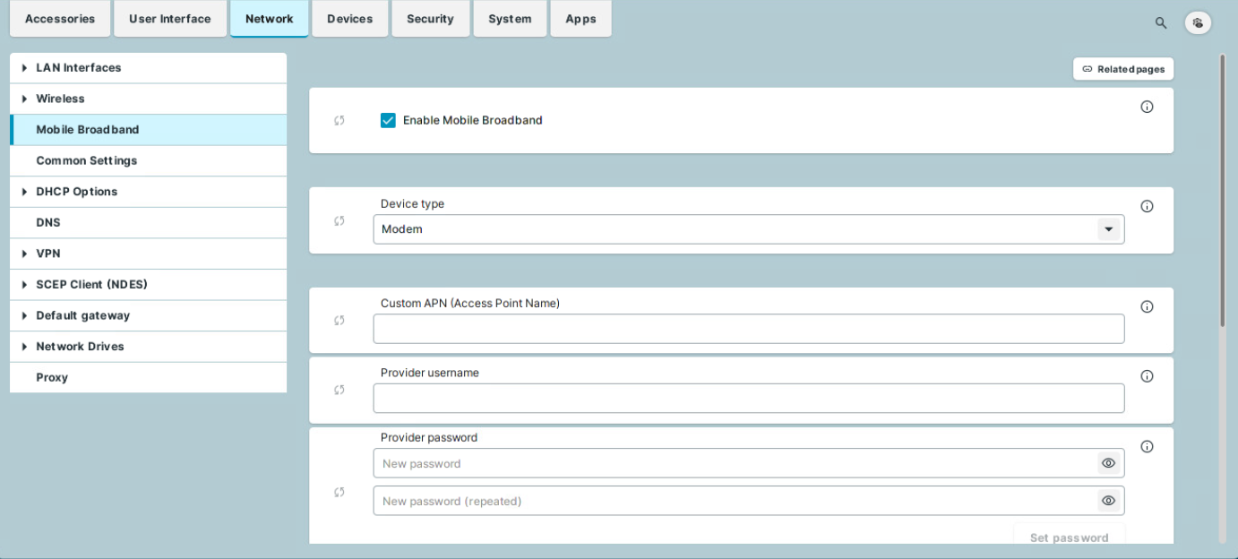 You can also use the Mobile Broadband Tray App for quick configurations. For details, see Tray Applications in IGEL OS 12 .
