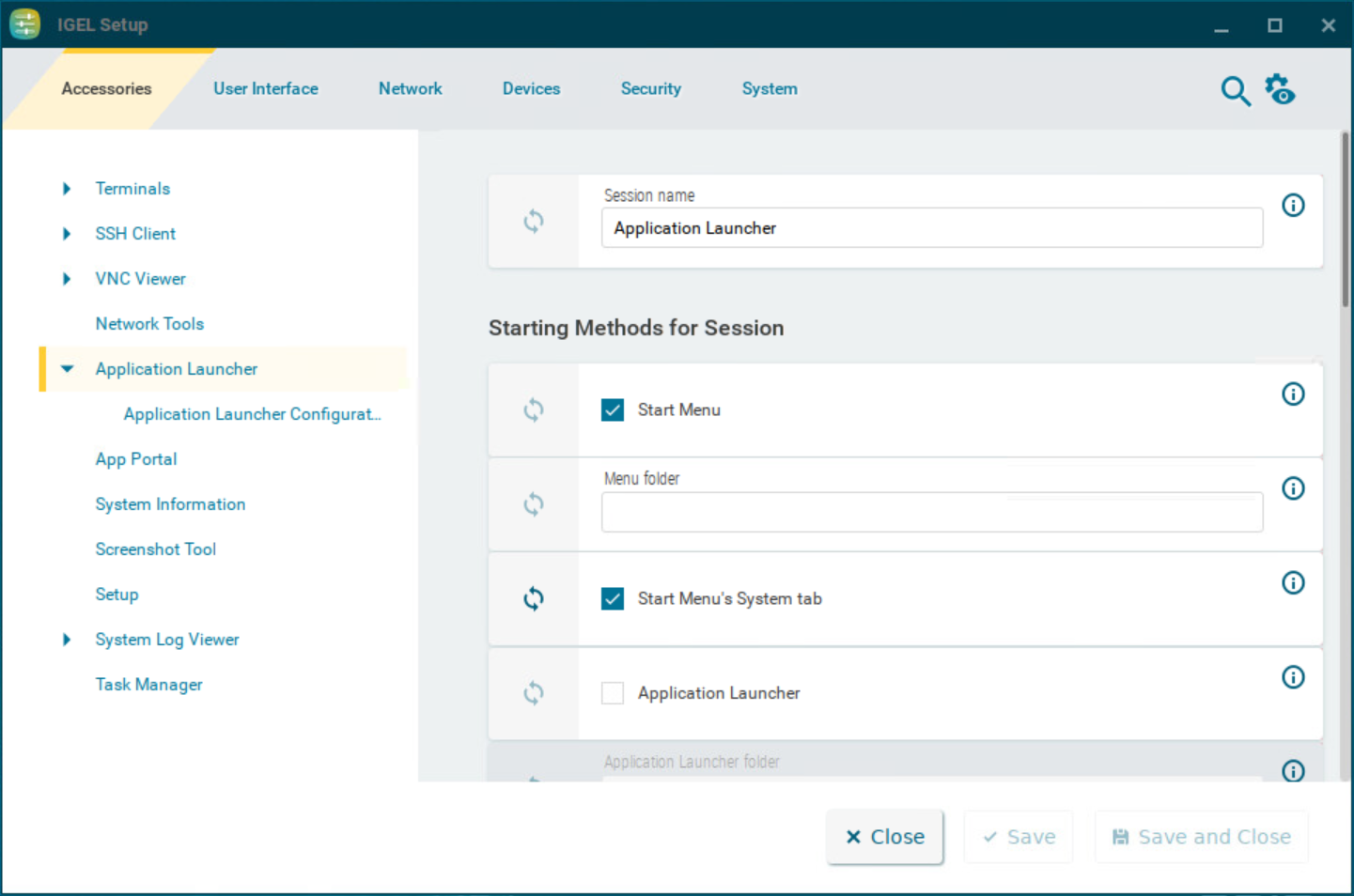With the Application Launcher, you can launch predefined sessions, and device functions and tools. You are also given information regarding the device and the licenses used. This article shows how to configure the Application Launcher in IGEL OS.