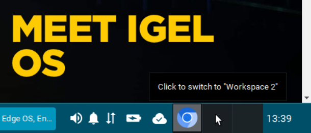 The Pager makes switching between multiple full-screen applications easier. Instead of minimizing/maximizing sessions or switching between them using key combinations, you simply click on the desired workspace using the mouse. When you switch back, the virtual desktop is displayed exactly as before (unless you restarted the system or changed the language in the IGEL Setup).