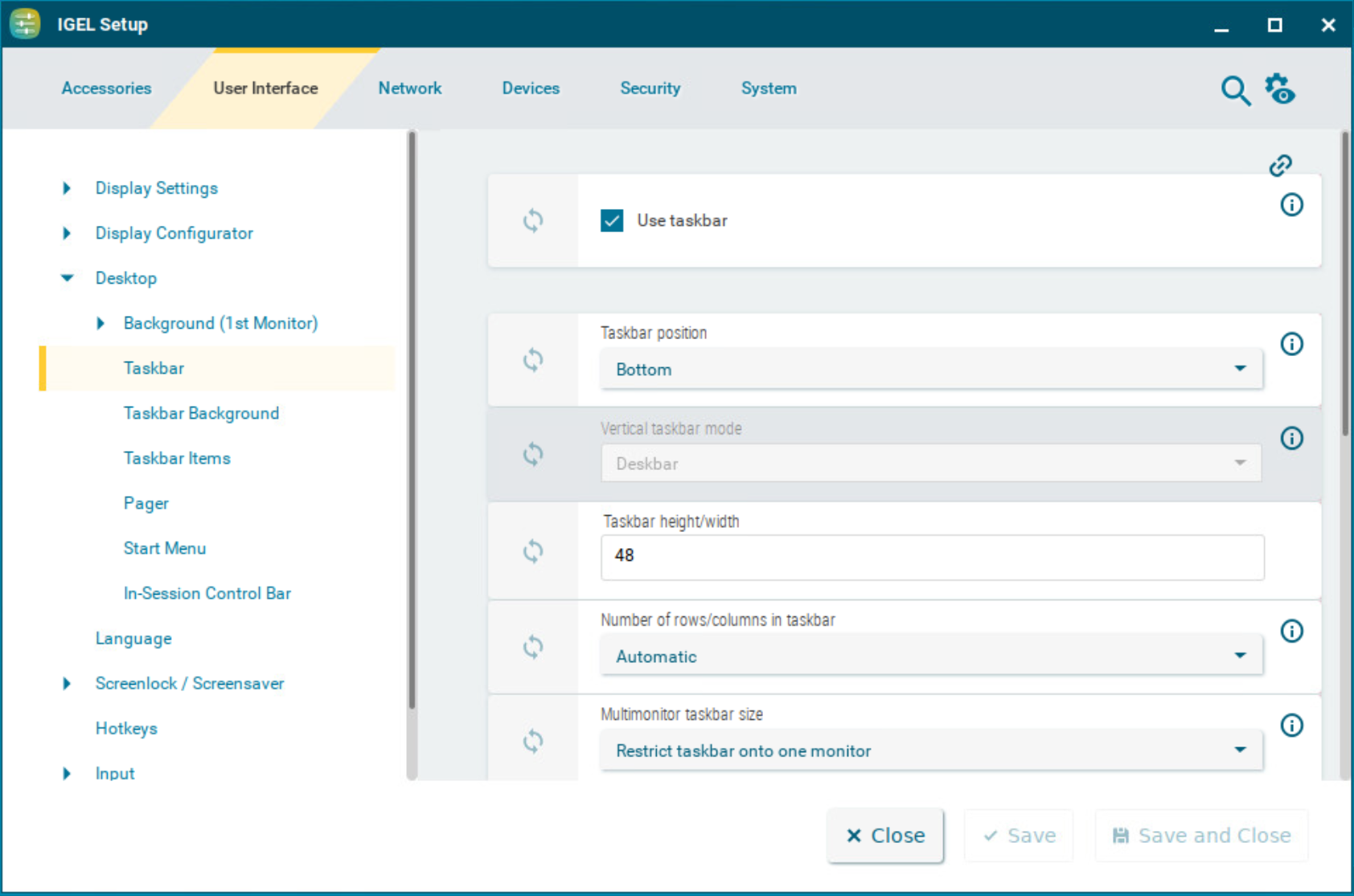 Taskbar Configuration in IGEL OS 12
