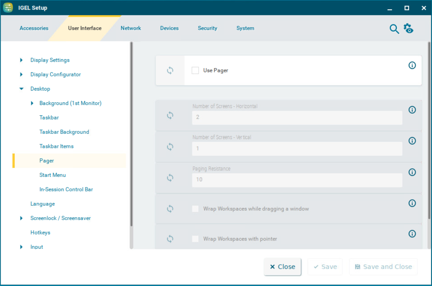 You can use the Pager tool to enable the use of multiple virtual desktops and organize your IGEL OS desktop. The Pager allows you to divide one desktop into several virtual workspaces. This article shows how to configure and use the Pager tool in IGEL OS. For details on how to use the pager, see the below section Using Pager .