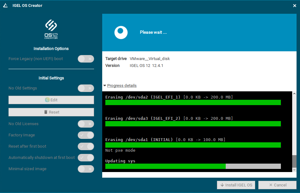 The installation of IGEL OS 12 starts.