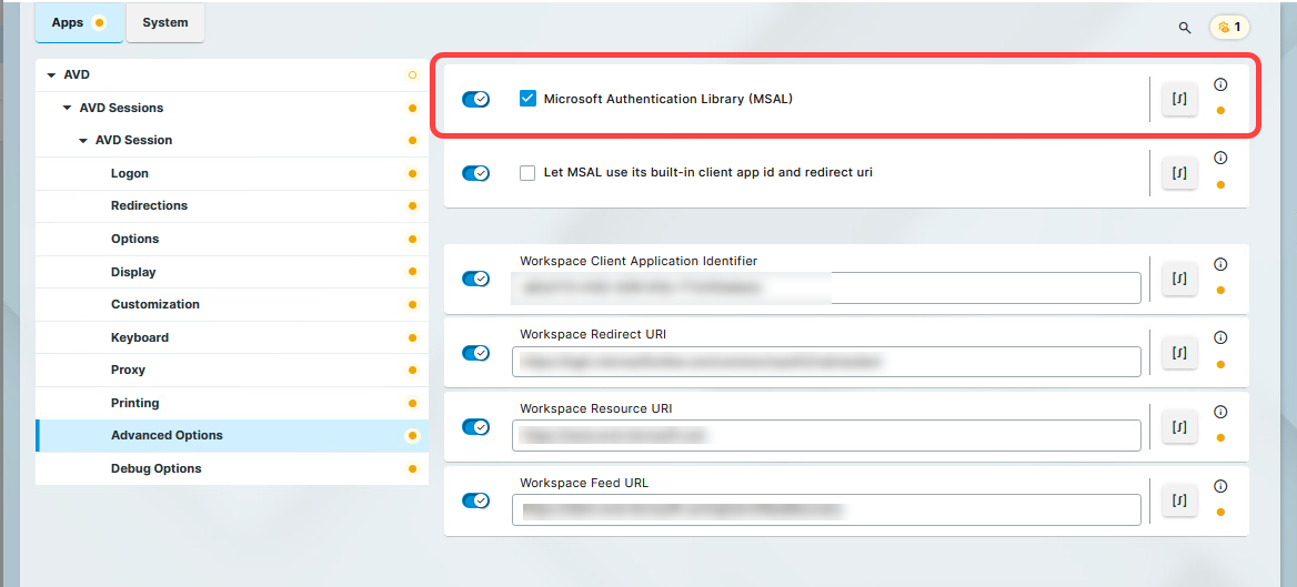 1. Go to app.avd.sessions.avd0.options.cmd_ext and set the following command as the value: