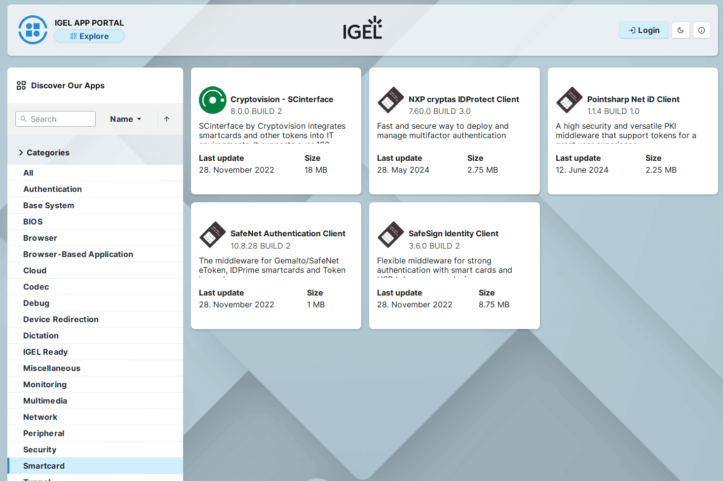 IGEL has a built-in OpenSC that you can use as middleware, or you can choose a middleware from the IGEL App Portal.