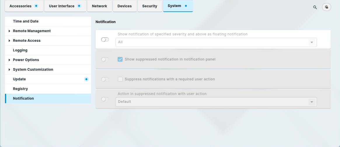 ☑ Notifications are suppressed even when they require a user action. The action is defined by Action in suppressed notification with user action.